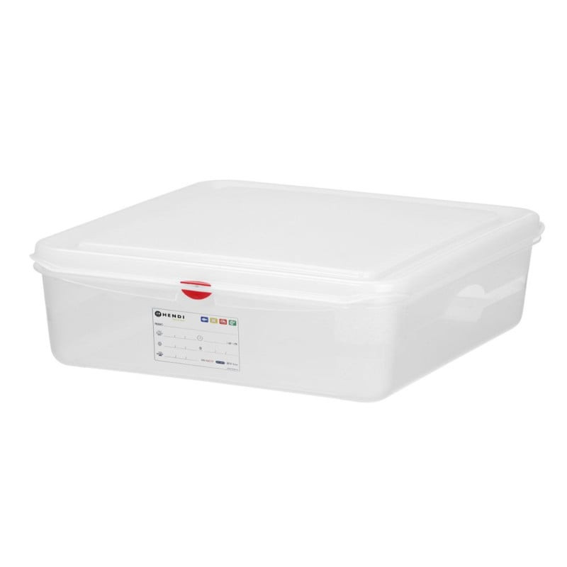 This Gastronorm Container GN 1/1 Graduated is made of polypropylene and therefore withstands temperatures ranging from -40°C to 80°C. Thus, it is compatible with freezers, cooling cells, microwaves, bain-marie, or even chafing dishes.