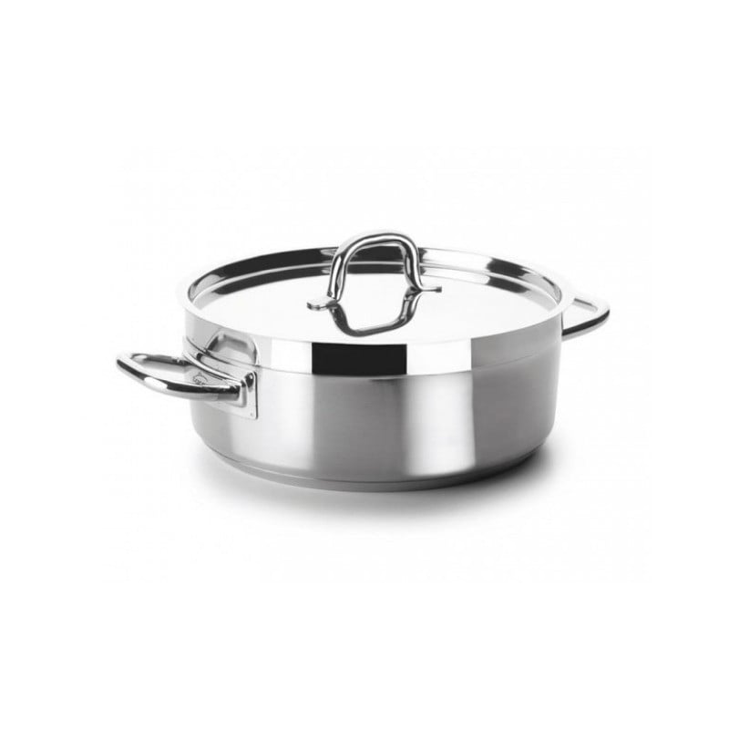 The handles and the lid handle are made of 18/10 stainless steel tube. Additionally, this braising pan is compatible with all types of stoves, except for induction. Inside, the finish is matte and outside the finish is polished matte.