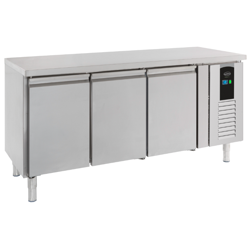 Ideal for catering professionals, this Positive Refrigerated Table is a highly reliable unit that combines quick access with an incredibly sturdy work surface. With 476 liters of usable net capacity, this refrigerated table can handle peak periods, and heavy-duty castors and stainless steel construction make cleaning at the end of service easy. Temperature control is also easy thanks to the integrated digital controls and display. The table features removable shelves that can be quickly replaced with GN trays - ideal for quick food rotation. Polar U-Series refrigerators are designed to reliably store your high-value products. Built to the highest commercial specifications, these appliances feature a powerful fan-assisted cooling system, ideal for reducing the risk of food spoilage while preserving flavor and nutritional value. If you plan to open your cabinet very frequently, the Polar U-Series refrigeration system reliably maintains a constant cold temperature in ambient temperatures up to 43°C.