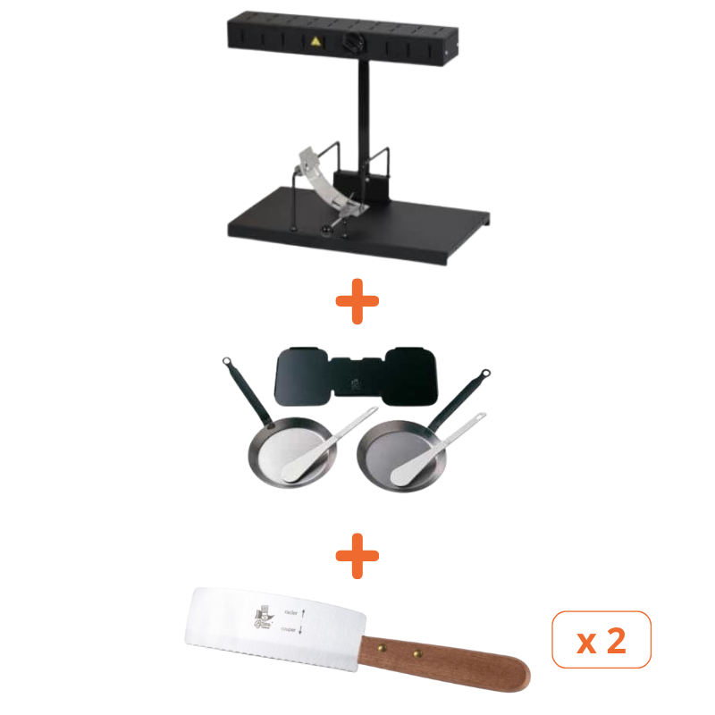 Coltello non incluso, disponibile come accessorio. Troverete anche come accessori il set per spiedini e il set per reblochonade.