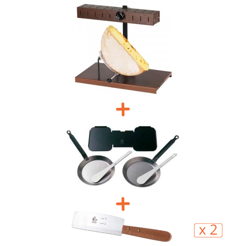 Questo Coltello per la Raclette comprende una lama in acciaio inossidabile temprato, un manico in legno verniciato e rivetti in ottone. Ha un lato liscio per grattugiare il formaggio e un lato micro-seghettato per realizzare delle religiose.