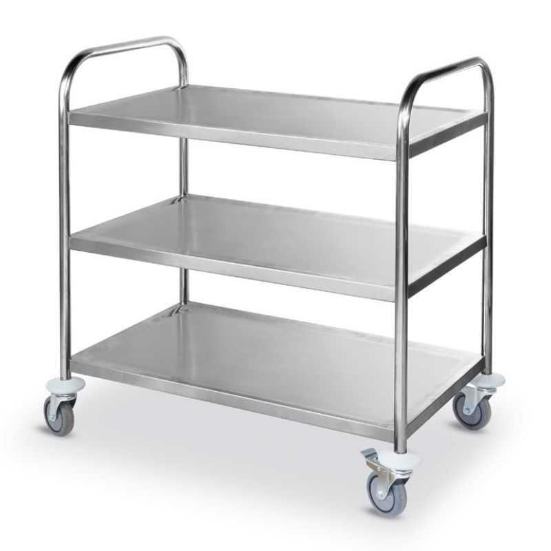 Le dimensioni generose del carrello, con una lunghezza di 1000 mm, una profondità di 495 mm e un'altezza di 920 mm, offrono una capacità sostanziale, in grado di rispondere alle esigenze dei servizi più esigenti. La progettazione a tre livelli massimizza lo spazio disponibile per organizzare efficacemente piatti, bevande, stoviglie e altre necessità del servizio. Ogni livello è facilmente accessibile, rendendo il servizio più rapido e limitando i viaggi in cucina.